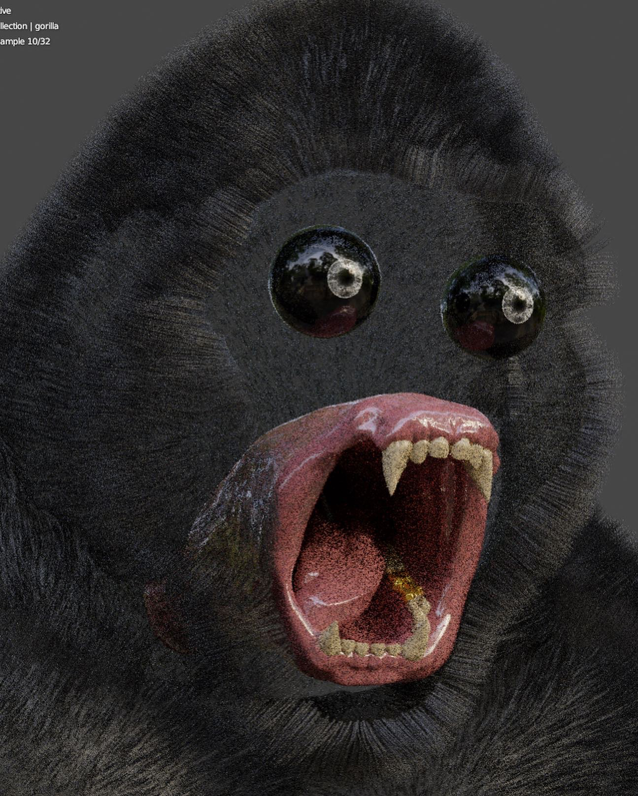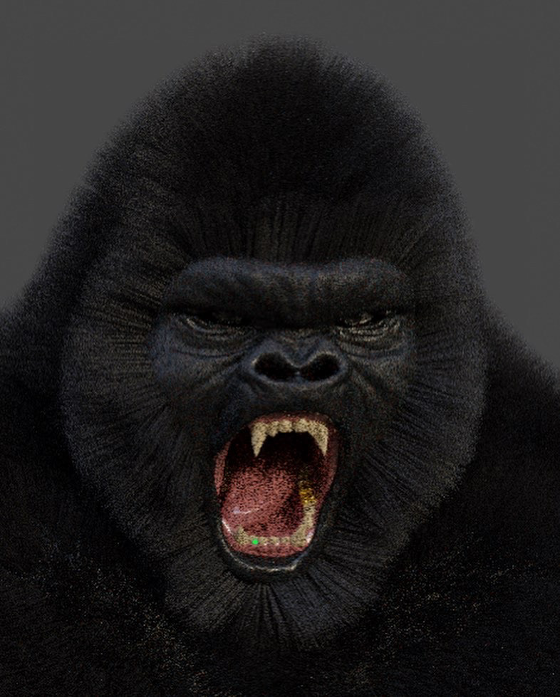 3D Gorilla sculpted in Blender 3D and textured with Adobe Substance Painter, particle simulation and grooming done in blender also.